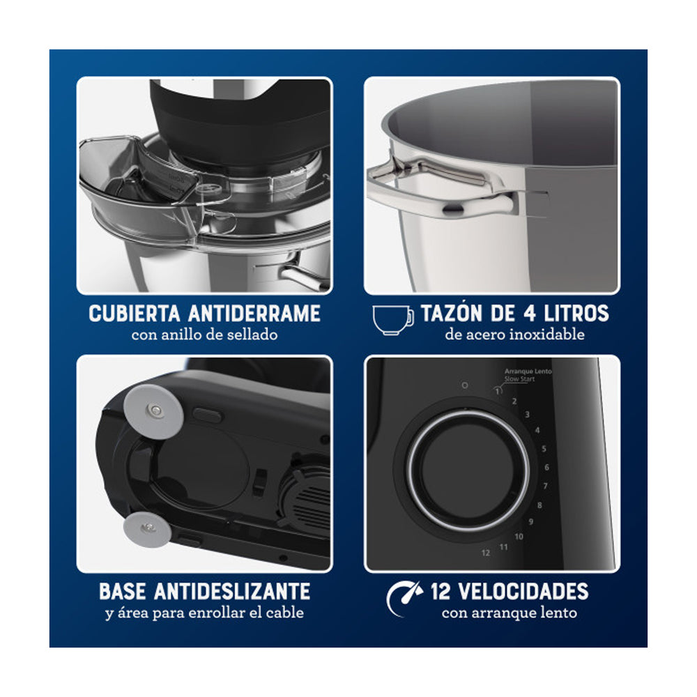 Prepara cualquier tipo de receta. El motor de 850 W proporciona la potencia necesaria para preparar masas, cremas y todo lo que necesites, dejando tus dulces con la consistencia perfecta.