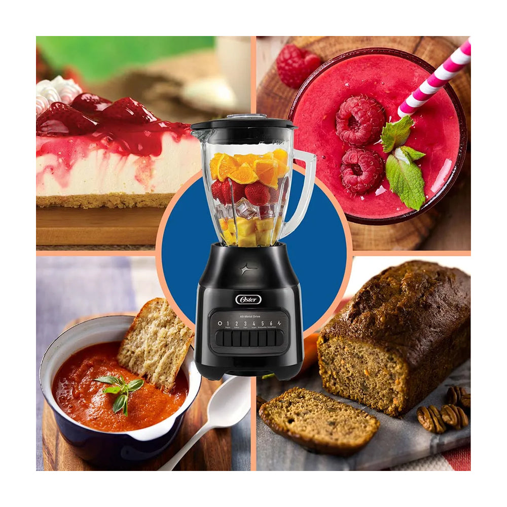 Oster BLSTPEGBPB Licuadora de 6 Velocidades | Boroclass | All-Metal Drive | Función de Pulso | 1.5L | 800W | Negro