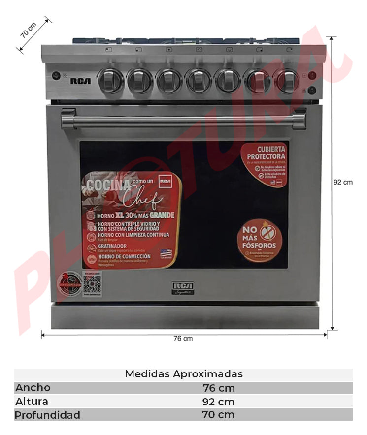 RCA Signature Estufa a Gas de Acero Inoxidable | Convección | Enc. Eléctrico | 30" | 5 Quemadores