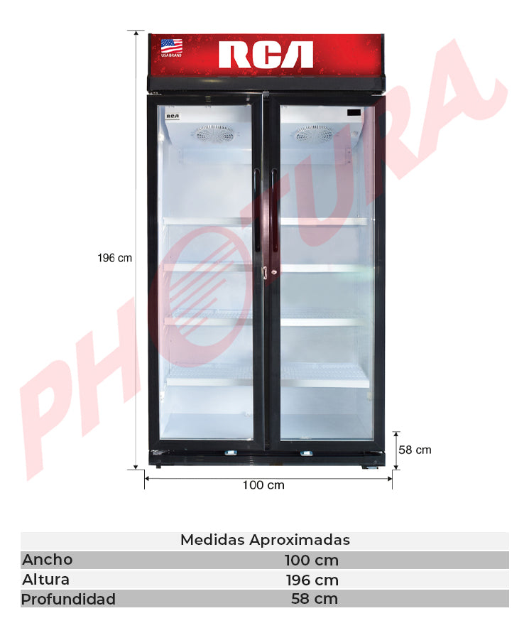 RCA Vitrina Comercial de 2 Puertas | Cierre Automático | Seguridad con Llave | 25p3