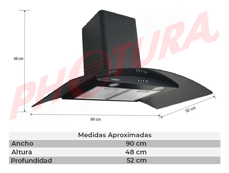 Sankey Extractor de Grasa de 90cm | Tipo Chimenea | 3 Velocidades | 2 Filtros de Aluminio | 500m3/H | Negro