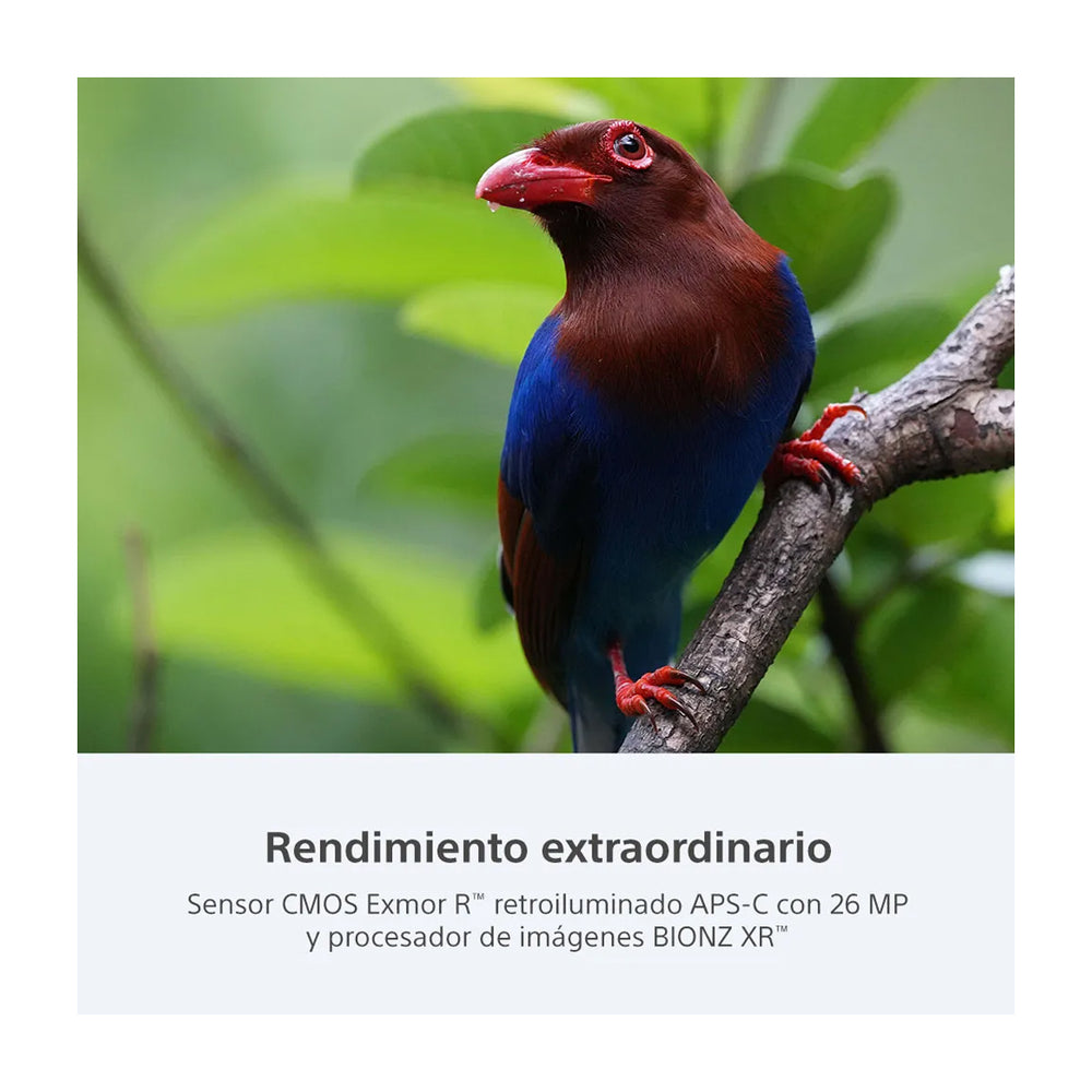 El sensor de imagen Exmor R CMOS avanzado con 26,0 megapíxeles efectivos cuenta con las tecnologías de sensor de imagen de Sony y ofrece sensibilidad, resolución y rango dinámico extraordinarios. Este se combina con el potente nuevo motor de procesamiento de imágenes BIONZ XR™ para brindar gradaciones naturales y colores realistas. La cámara admite configuraciones de sensibilidad desde ISO 100 a ISO 32.000 en fotografías y película, lo que proporciona aún más flexibilidad para capturar contenido en diversos entornos, como en áreas interiores o con poca luz.